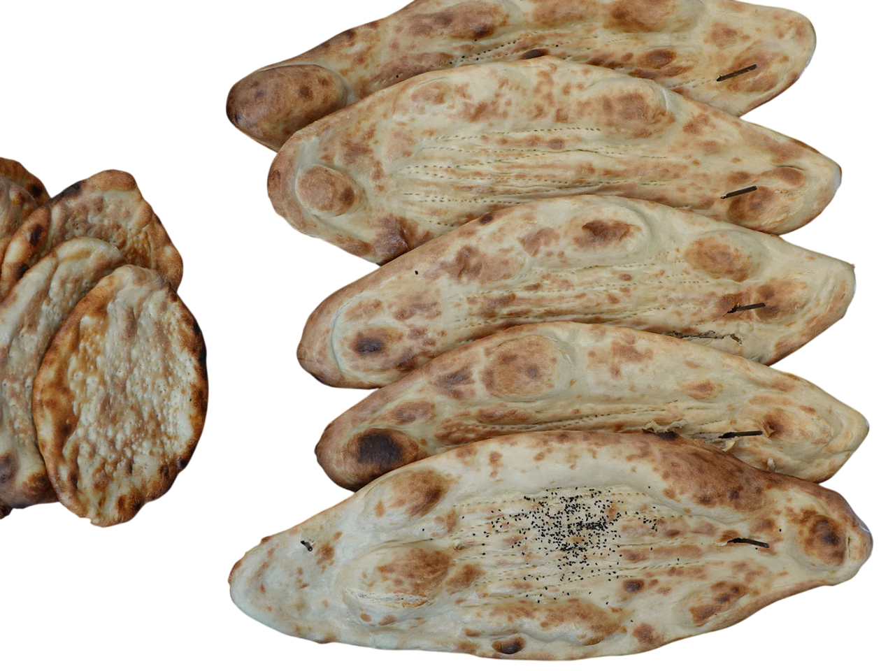 Traditional Afghan naan with a soft center and lightly crisp crust. A daily staple enjoyed with every meal.